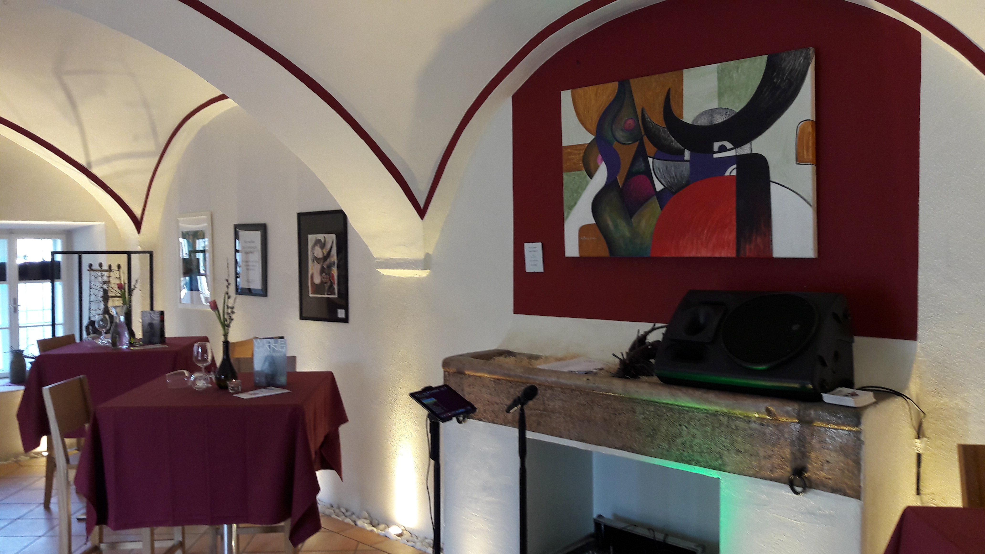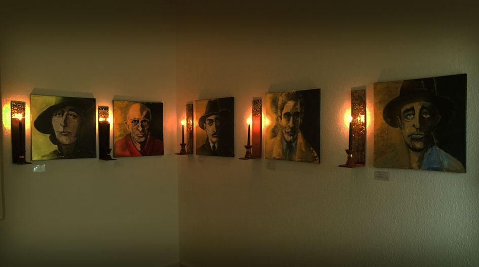 Leonhard Grötsch (Gemälde), Gerhard Brand (Drucke), Dr. Magnus Kuhn (Installation), Frances de Schrevel (Tonfiguren)