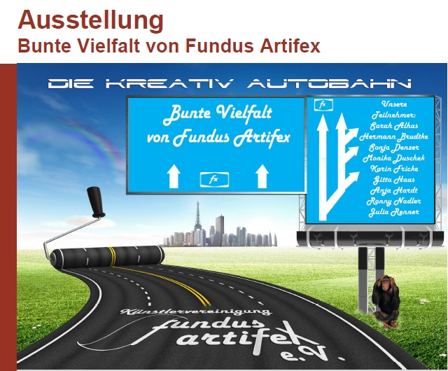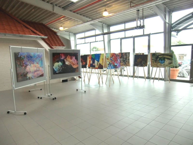 Gemeinschaftsausstellung mit 14 weiteren Kuenstler:innen, Die damit verbundene Vielfalt ist fuer Besucher sehr attraktiv. Kunst fuer alle ist eine Verkaufsausstellung mit preiswerten Bildern, also Kunst fuer jedefrau und jedermann. Kunst, die bezahlbar ist. Die Galerie befindet sich in einer denkmalgeschuetzten Fabrik aus dem Jahre 1906.